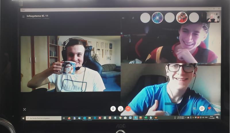 Bedingt durch Corona sitzen die 8 Schüler der 11. Klasse, die das Fach Informatiksysteme belegen, nun zuhause und müssen Aufgaben lösen, statt wie immer im Klassenraum nebeneinander vor ihren Laptops zu sitzen.