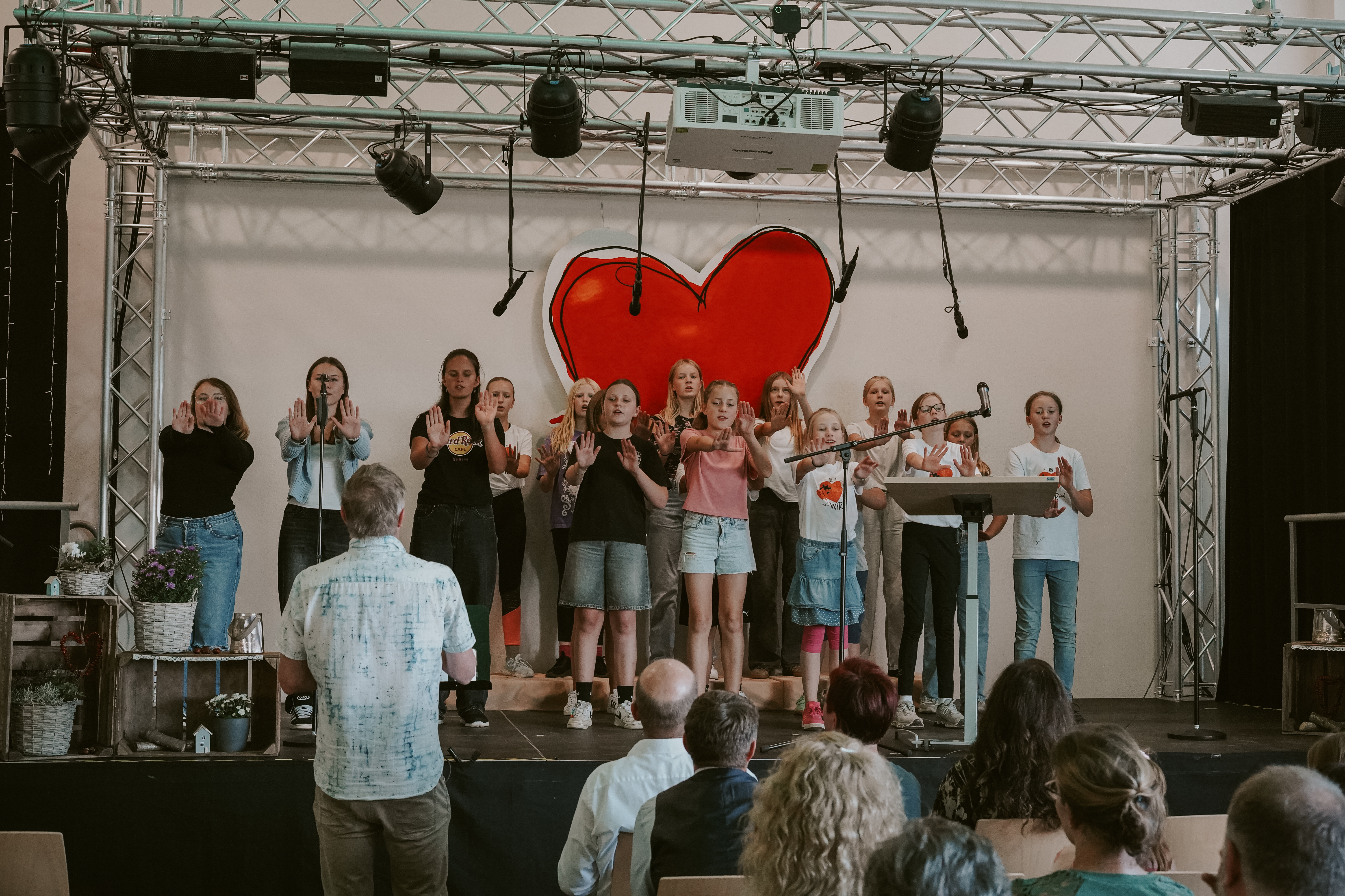 Am späten Nachmittag gab es zum Abschluss eine Festveranstaltung für geladene Gäste und natürlich das Team des Schulzentrums. Mit Grußworten und Glückwünschen bedachten uns die Redner der Geschäftsführung, des Vorstandes des OVV als Träger der Schule sowie der Schönecker Bürgermeister. Ehemalige Schüler, welche auch Träger des Timotheus Preises sind, berichteten von Ihrer Schulzeit. Den musikalischen Rahmen gestalteten die Mitglieder aus Chor und Musical sowie die Schulband.